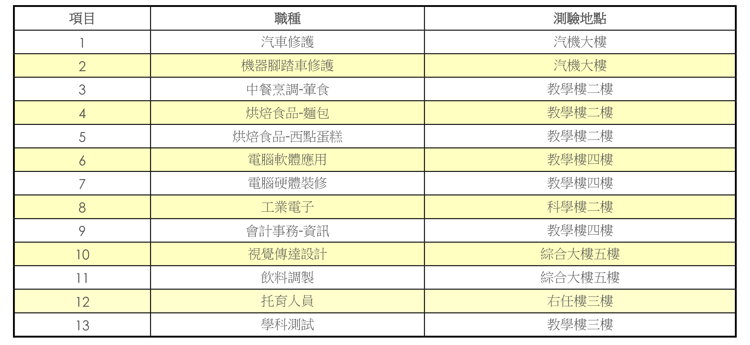 | 各職類測驗地點 | |||||||||||||||||||||||||||||||||||||||